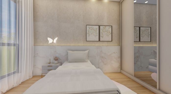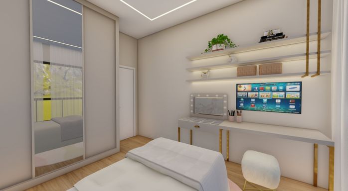 • 2 quartos, sendo 1 suíte